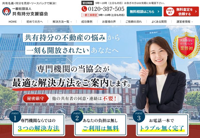 共有持分支援協会は、共有持分専門で、仲介・買取の両方に対応している社団法人です。